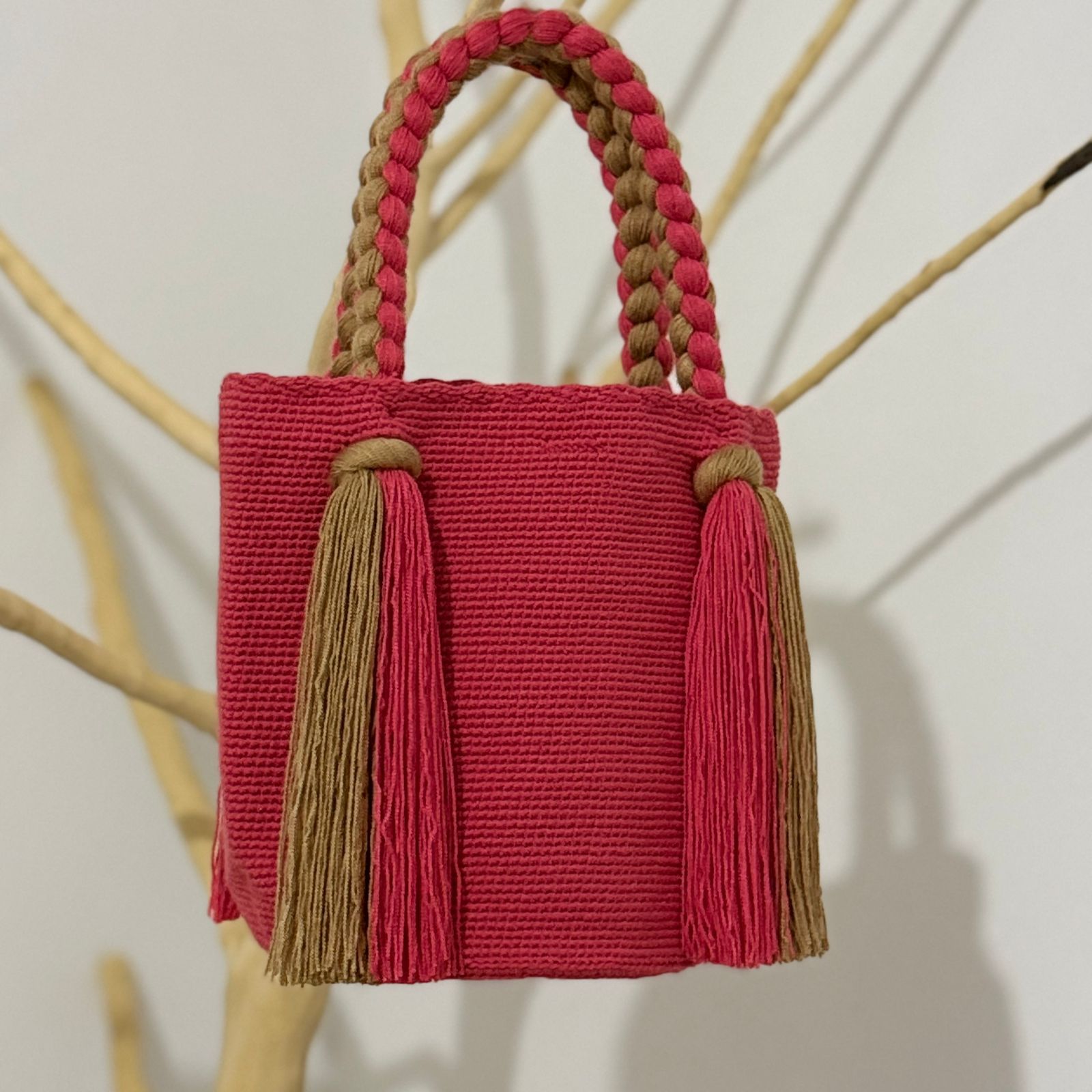 Mochila artesanal wayúu. Hecha a mano en la península de La Guajira por indígenas nativos. Producto 100% colombiano y patrimonio cultural de La Guajira. Sus creativos diseños y símbolos representan elementos propios de la naturaleza de la región.