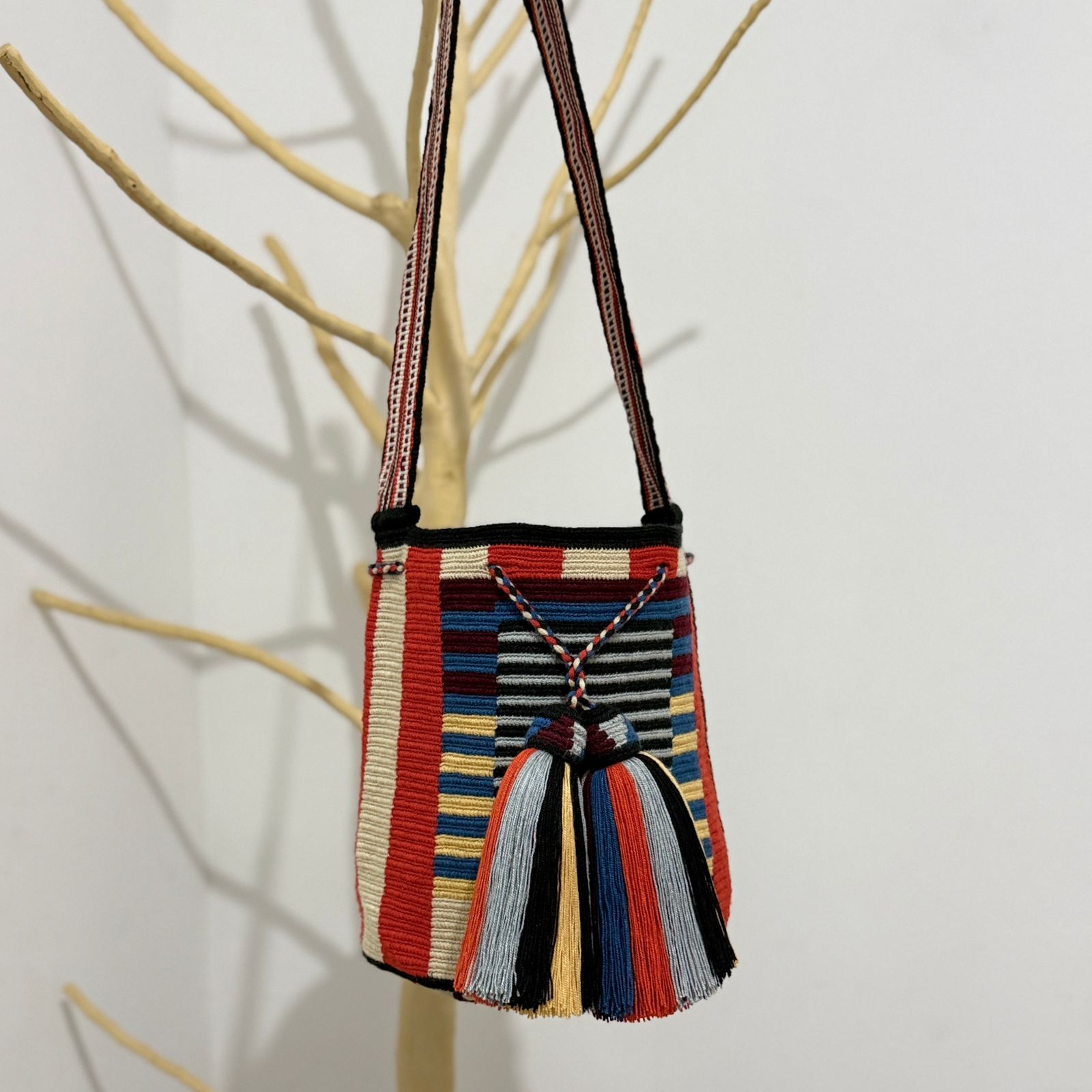 Añade un toque de originalidad y elegancia a tu vestimenta con nuestra mochila Wayuu de diseño. Cada vez que la lleves contigo, estarás compartiendo la historia y la pasión de una comunidad artesanal extraordinaria.