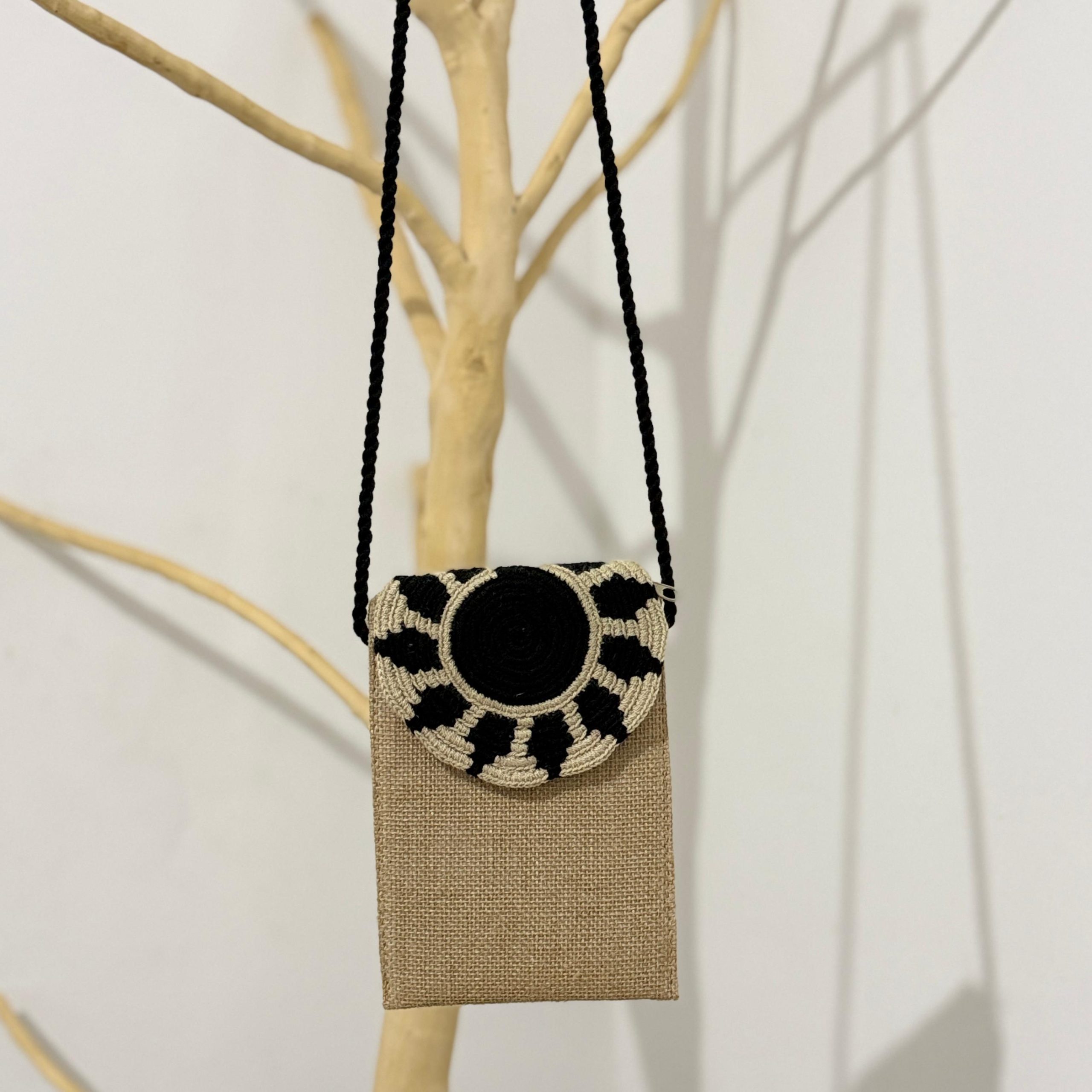 Fusión de Materiales: El cuerpo del porta celular está elaborado en yute natural (fibra de fique), aportando un acabado rústico, ecológico y duradero.
